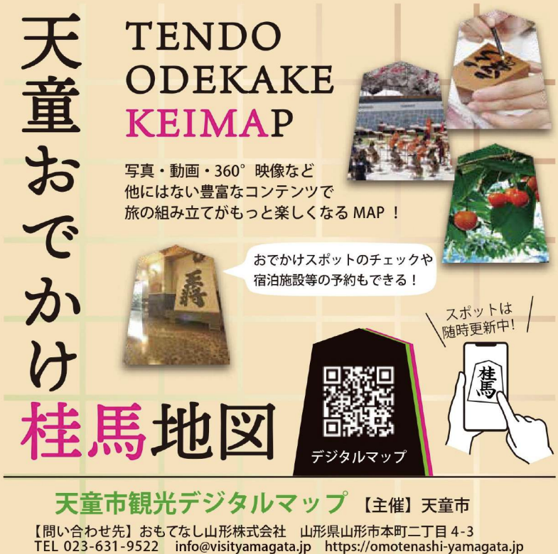ご滞在中の観光やお食事、お土産探しに便利な天童市観光デジタルマップ「天童おでかけ桂馬地図(けいまっぷ)」とスタンプラリーが始まりました。地図を使えば、観光スポット情報のチェックやルート案内はもちろん、スタンプラリーにも簡単に参加できます。